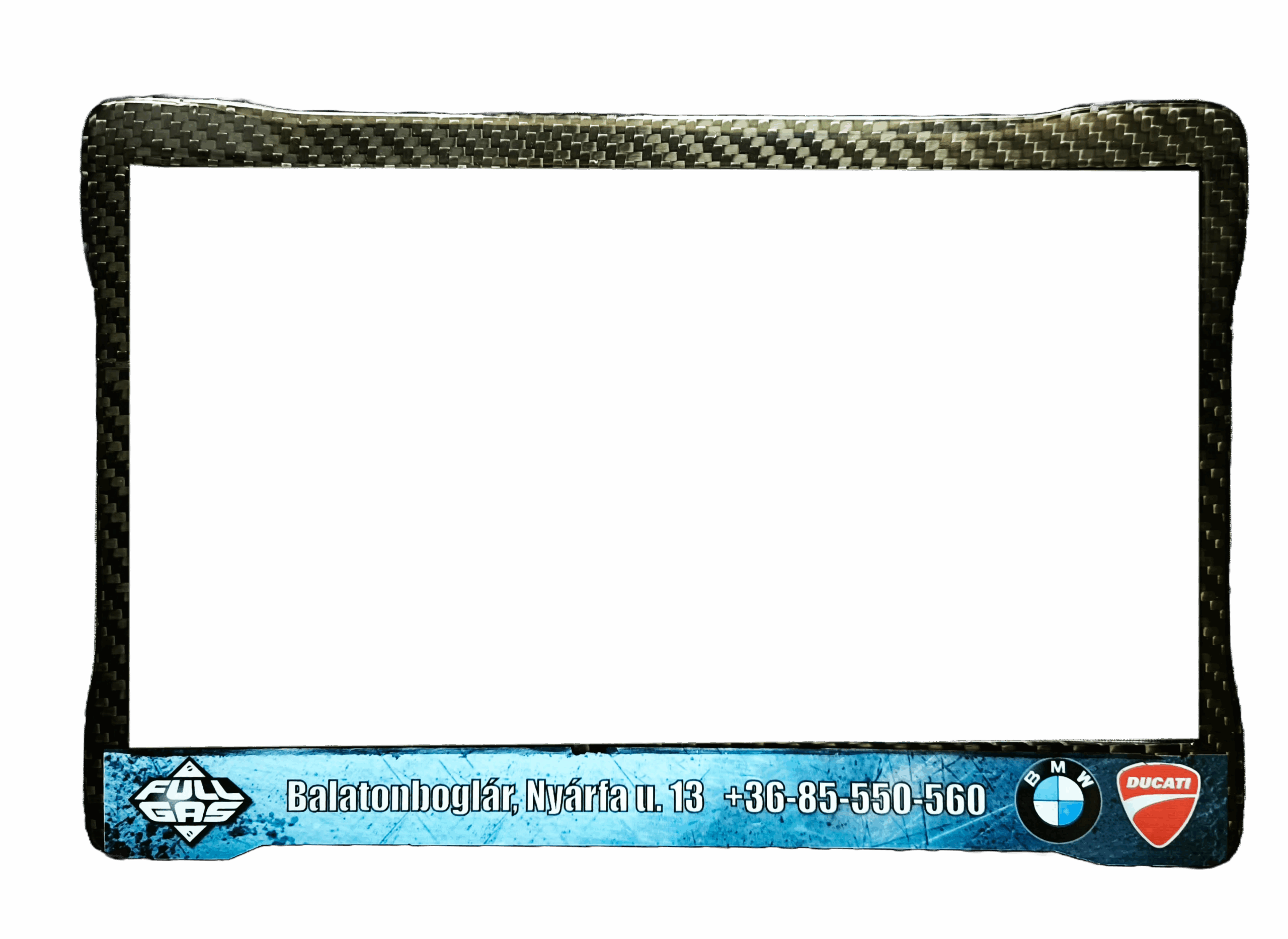 Szabvány méretű rendszámtábla tartóra felhelyezhető szénszálas díszkeret. A keretet egyedi színes nyomatú matricával személyre szabhatod, így teljesen egyedi megjelenést kölcsönözve járművednek. Az autóipar által használt, időjárásálló ClearCoattal van borítva, így matt vagy fényes kivitelben is elérhető, garantálva a hosszú távú tartósságot és esztétikát.
